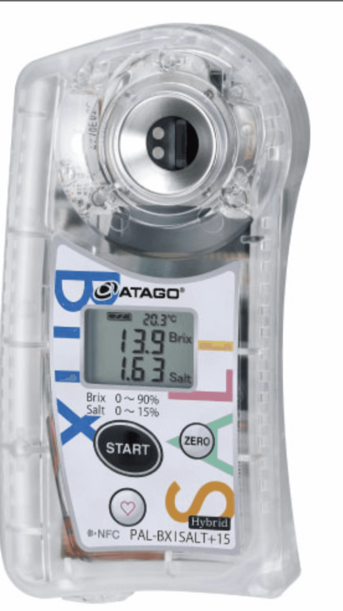 Đây là sự kết hợp giữa khúc xạ kế và máy đo muối có lăng kính quang học được sử dụng để đo nồng độ (Brix) và điện cực titan được sử dụng để đo hàm lượng muối.